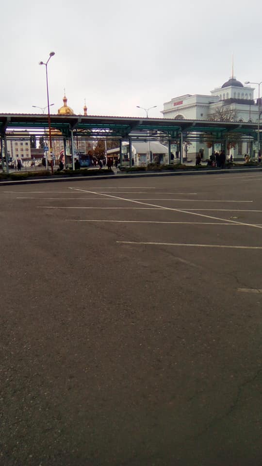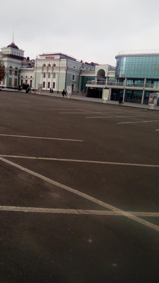 На знімках показана привокзальна площа. Як свідчать фото, уздовж площі йдуть лише кілька людей.