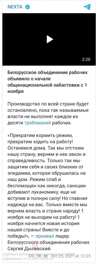 Позицію білоруських робітників озвучив голова об'єднання Сергій Дилевський. Він наголосив, що зараз режим Лукашенка дуже слабкий через потужні санкції Заходу.