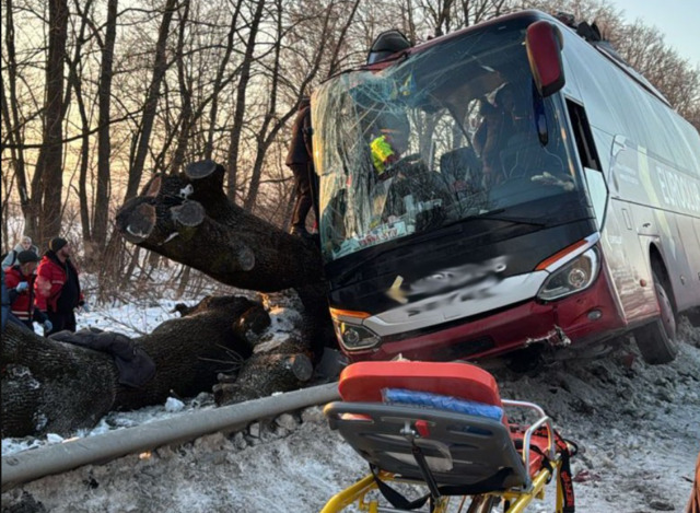 Міжнародний автобус влетів у дерево на Львівщині: транспорт розтрощений, на місці працюють рятувальники (фото)