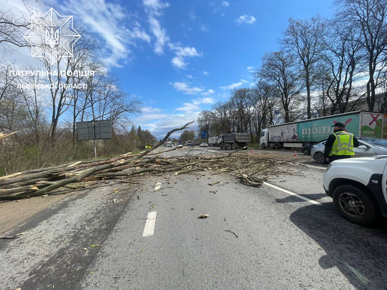 Траса на Львів перекрита: дерево впало на дорогу, введено реверсний рух
