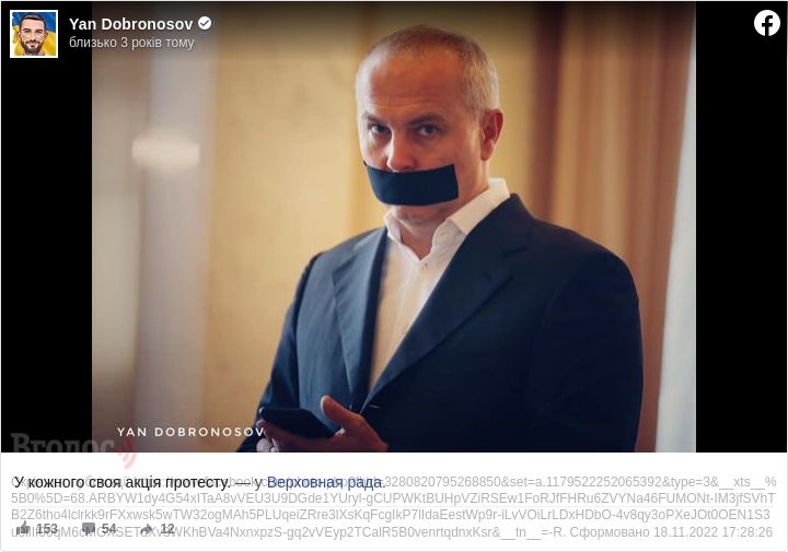 Світлину, на якій Шуфрич із заклеїним ротом, він виклав на своїй сторінці у “Фейсбуці”.