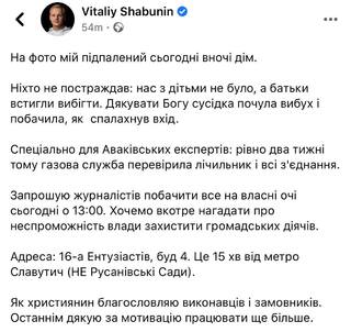 За словами Шабуніна, сусідка почула вибух та побачила, як спалахнув дім.