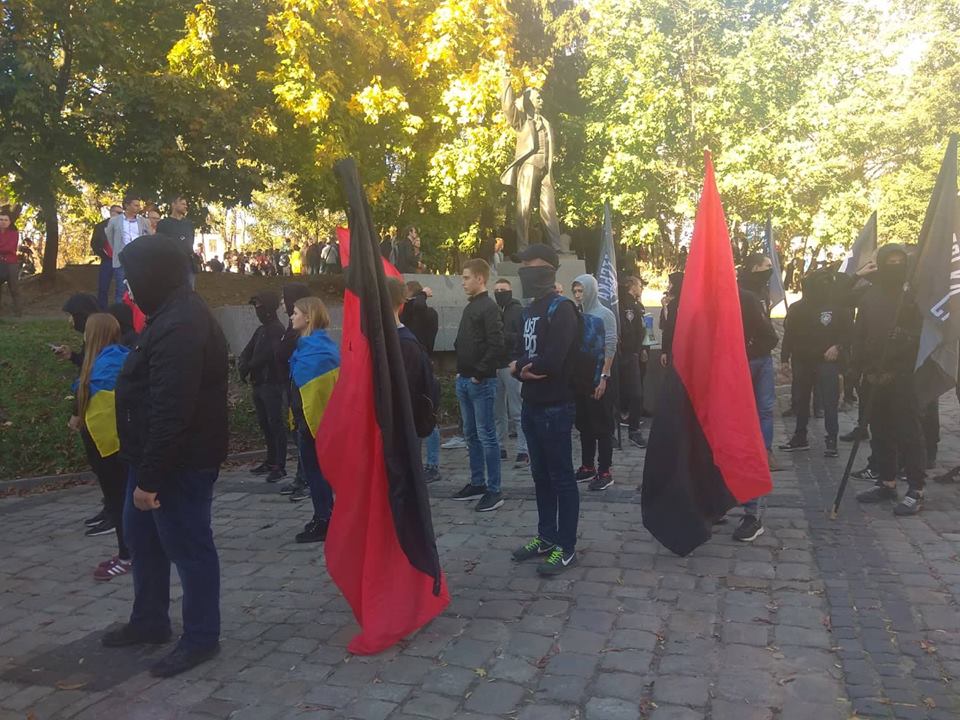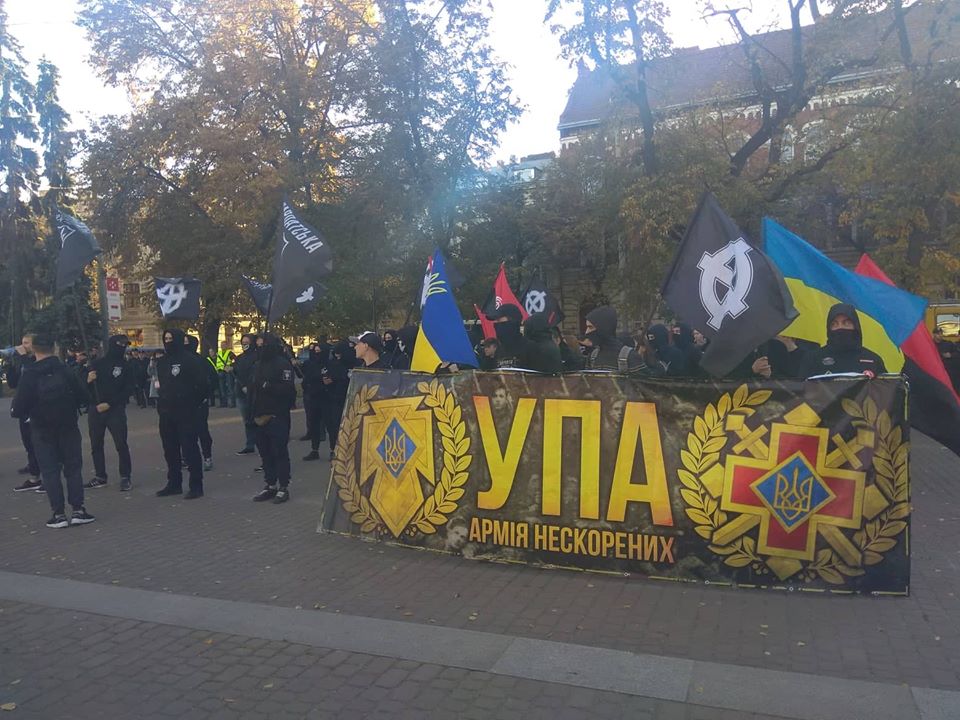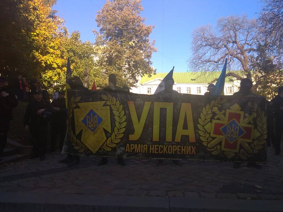 - «Кому належить Україна? Українцям! Кому належить Україна? Патріотам! Героям визвольної боротьби - слава!».