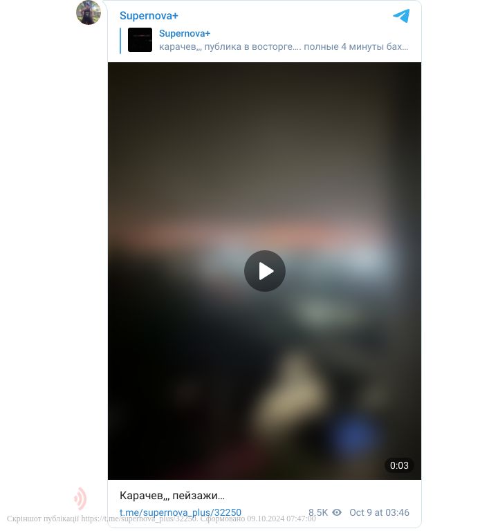 В мережі вранці були оприлюднені кадри, як стверджується, з Карачева, де можна побачити заграву від вогняної НС та почути звуки, схожі на детонацію.