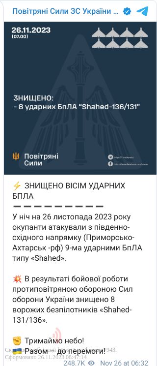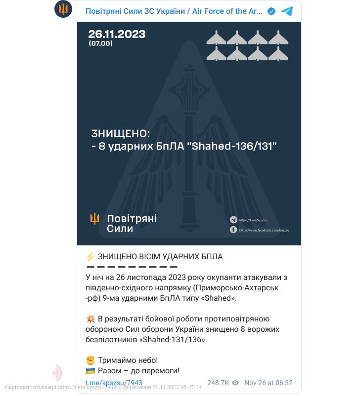 Вночі, 26 листопада, росія вкотре вдарила по Україні безпілотниками.