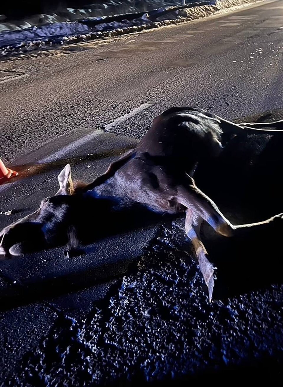 На місце ДТП приїхали єгері та забрали тіло тварини.