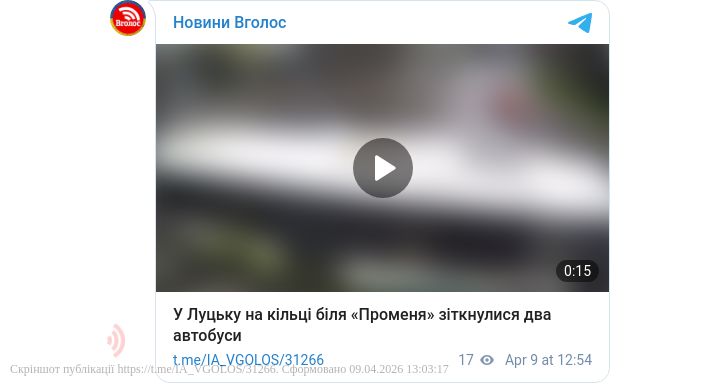 У Луцьку на кільцевій розв’язці біля ТРЦ «Промінь» сталася ДТП за участі двох автобусів.