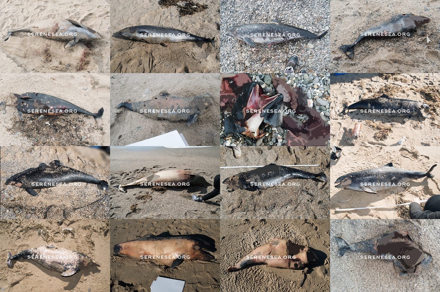 «15 і 17 березня співробітники Центру вивчення, порятунку і реабілітації морських ссавців »Безтурботне Море« провели обстеження ділянки узбережжя недалеко від Євпаторії (загалом 10 км берегової лінії) після надходження інформації про масову загибель дельфінів. В ході дводенного виїзду ми знайшли 16 загиблих китоподібних (14 азовок і 2 афаліни), візуально поділивши їх на дві тимчасові групи. Всі тварини з кожної групи лежали на однаковій відстані від води, перебували на ідентичною один одному стадії розкладання і в безпосередній близькості», — йдеться в повідомленні.