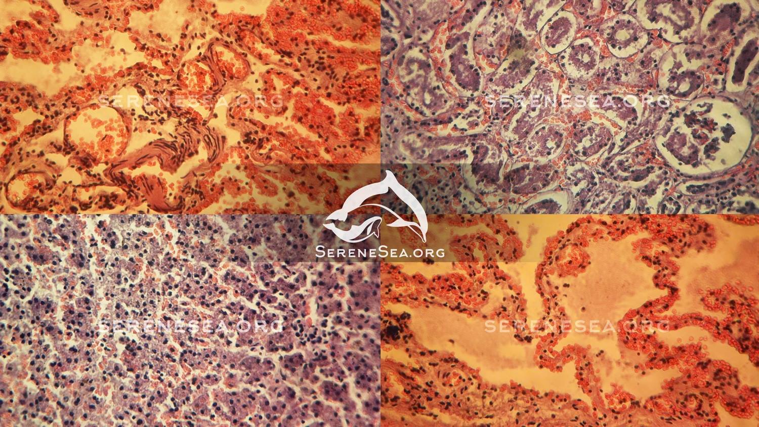 Зазначається, що всі 16 тварин загинули унаслідок потрапляння в сітях на камбалу або осетрових, виходячи з характеру і тяжкості пов'язаних ушкоджень, ідентичного стану тіл, а також їхнього положення щодо урізу води й один одного.