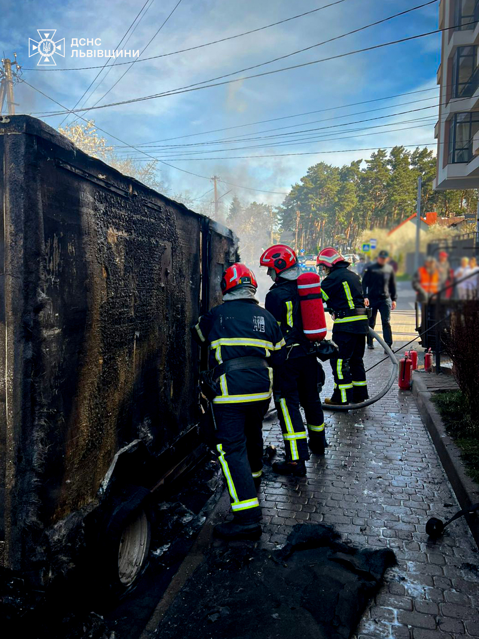На момент прибуття вогнеборців автівка була повністю охоплена вогнем. Як з’ясувалося, до приїзду рятувальників люди намагалися самостійно ліквідувати займання за допомогою вогнегасників.