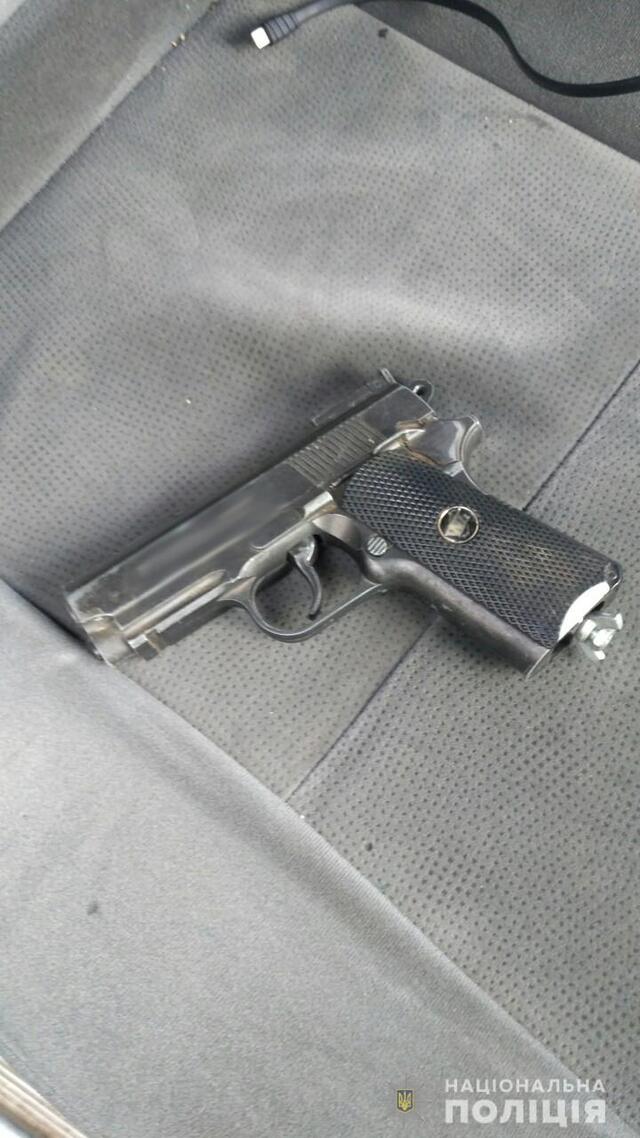 Зазначається, що під час огляду авто правоохоронці вилучили пістолет, биту та ніж. Чоловіків затримали.