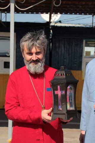 Прийняв Благодатний вогонь для вірян, які мешкають в окупованому Криму, архієпископ Сімферопольської та Кримської ПЦУ владика Клімент.