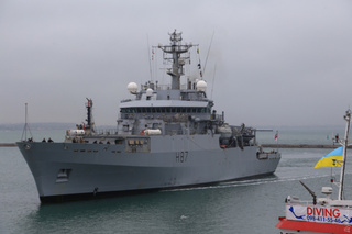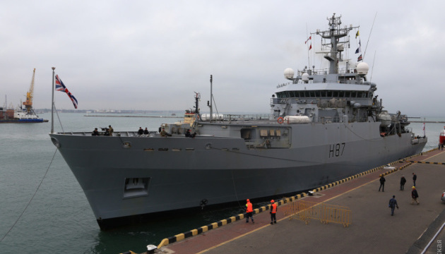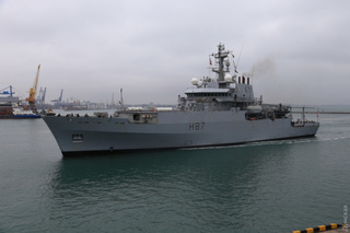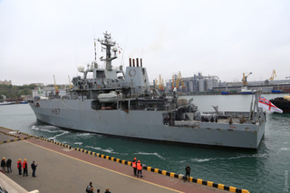 «У понеділок близько 10 год розвідувальний корабель «HMS Echo (H87)» британського Королівського військово-морського флоту пришвартувався біля причалу Одеського порту. У рамках візиту відбудуться спільні навчання британського та українських військових кораблів у відкритому морі. У програмі також екскурсія на борт розвідувального корабля «Echo» одеських курсантів та ліцеїстів і футбольний матч між українськими та британськими моряками, – зазначили в адміністрації порту.