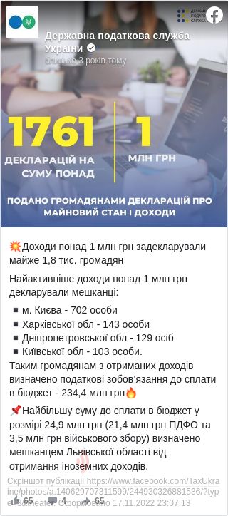 Загальна сума податків, які мільйонери мають заплатити до бюджету, сягає 234,4 млн грн.