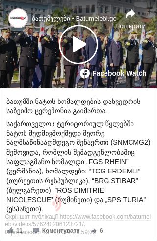 "Кораблі Постійної протимінної групи НАТО залишаться в Батумі до 5 листопада. Вони проведуть спільні навчання разом із представниками Берегової охорони Грузії, в ході яких буде здійснений обмін персоналом і спільні навчання", — йдеться в повідомленні аджарського уряду.