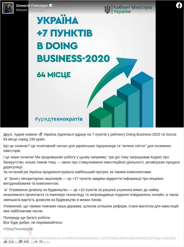 Як зазначив прем'єр-міністр України Олексій Гончарук у Facebook, це позитивний сигнал для українських підприємців та «зелене світло» для іноземних інвесторів.