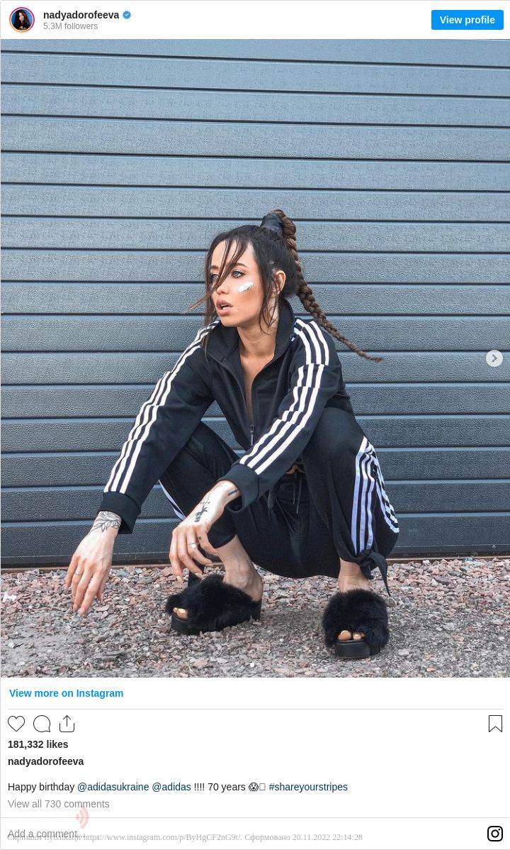 Волосся Дорофєєва зібрала в тугу косу, а на вилиці нанесла блискітки. Деяким підписникам такий образ сподобався, інші ж заявили, що він виглядає безглуздо.