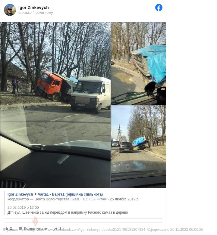 Про це у соцмережі повідомив співробітник львівської поліції Ігор Зінкевич.