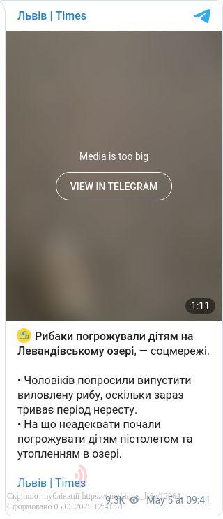 Поліціянти притягнули до відповідальності двох чоловіків, які незаконно рибалили на Левандівському озері та погрожували дітям. Один із правопорушників погрожував застосувати зброю.