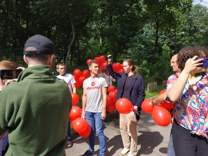 Прихильники проросійського блогера роздають кульки та кидаються на перехожих, котрі з ними не згодні. Себе вони називають «українцями». Натомість їм протистоять місцеві, котрі присутні у парку. Люди вигукують: «це проросійська агітація». Зазначимо, що перехожі у парку спершу брали червоні кульки, проте згодом, коли дізнались, що це пропаганда, викидали їх.