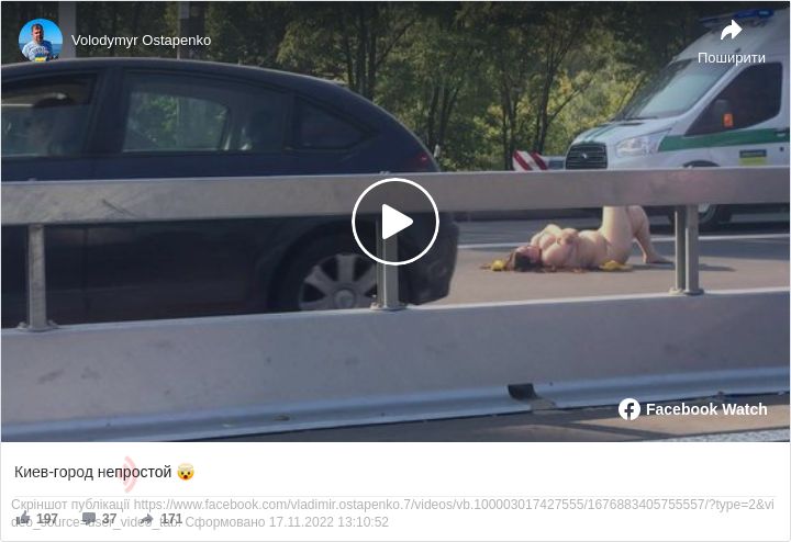 У Києві оголена жінка вляглася на дорогу посеред жвавої траси, чим спричинила затор.