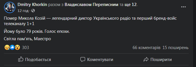 Вчора, 7 вересня, помер легендарний український диктор Микола Козій.