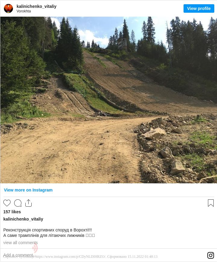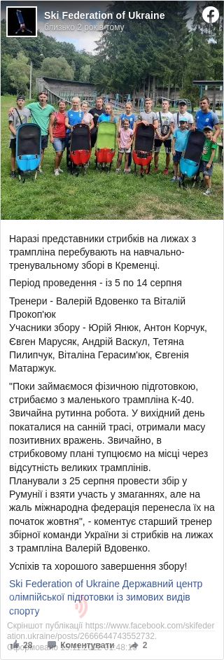Про це повідомляє член збірної України зі стрибків з трампліну Віталій Калініченко.