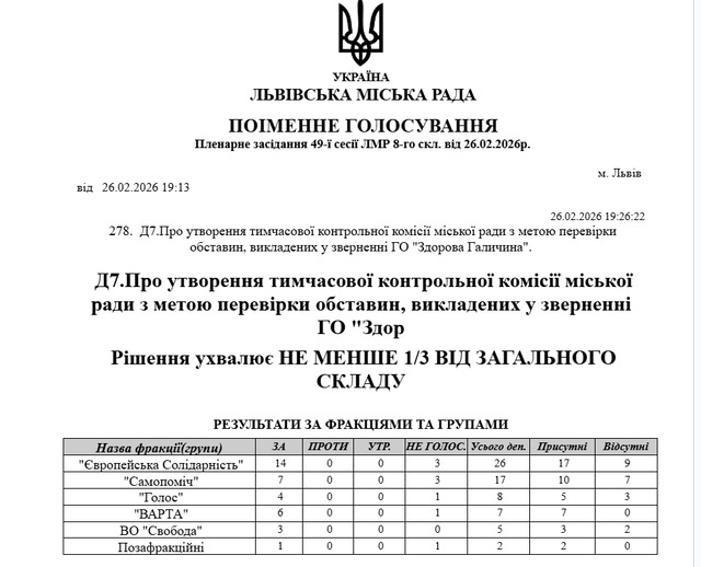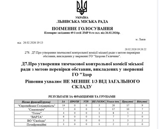 Депутатський корпус відреагував на це кричуще свавілля: було підготовлено відповідний проєкт ухвали, і 26 лютого 2026 року міська рада успішно проголосувала за створення незалежної тимчасової контрольної комісії.