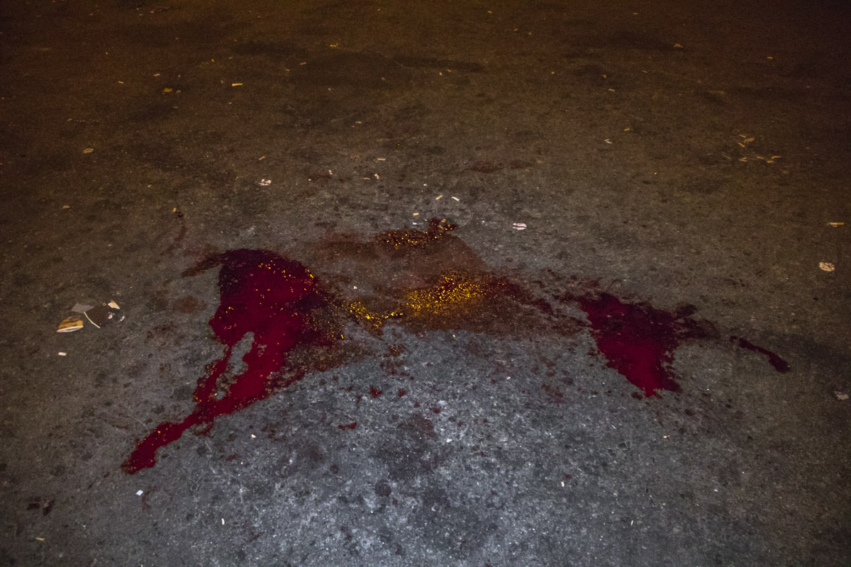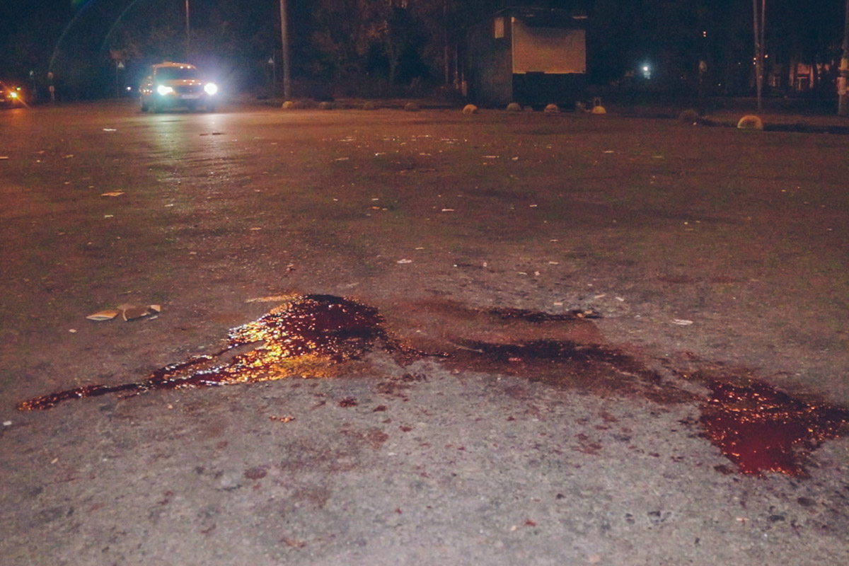 За словами свідка подій, Олександра, на дорозі п'ятеро чоловіків завзято били двох інших. Під час сутички вони вистрелили в одного з них із пневмата та розбили йому обличчя. Після цього потерпілий підбіг до машини нападників і взявся ламати двері. Однак його повалили на землю, стали бити ногами й ударили головою об ріг припаркованого поруч автобуса. Очевидець бійки стверджує, що розпочав розбірки саме постраждалий чоловік.