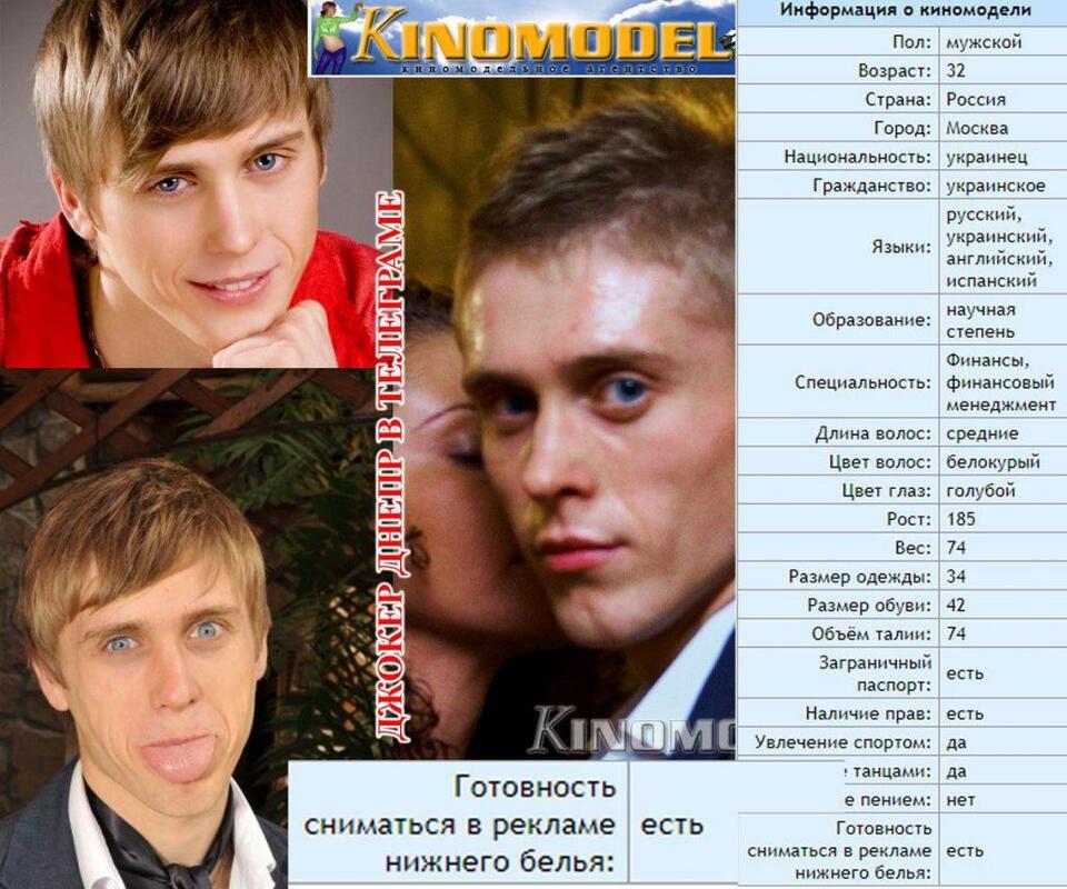 Анкета із схожим на Бондаренка чоловіком, опублікована на сайті «Киномодель».