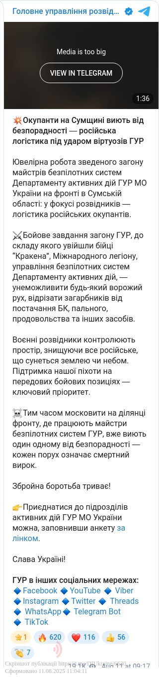 За даними ГУР, російські війська на цій ділянці фронту перебувають у стані безпорадності. Кожна спроба росіян перекидати ресурси завершується втратами.