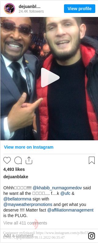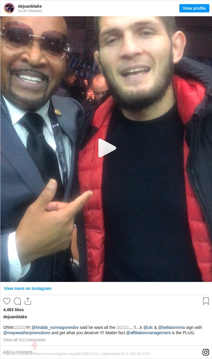 Відео з відповідною заявою боксера опублікував в Instagram його менеджер Деджуан Блейк.