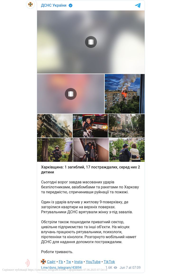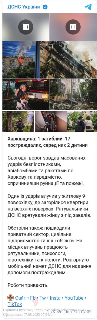 Росіяни з ночі й до самого ранку, 7 червня, масовано атакували Харків різними засобами ураження. Це найпотужніша атака РФ по місту за весь час війни.