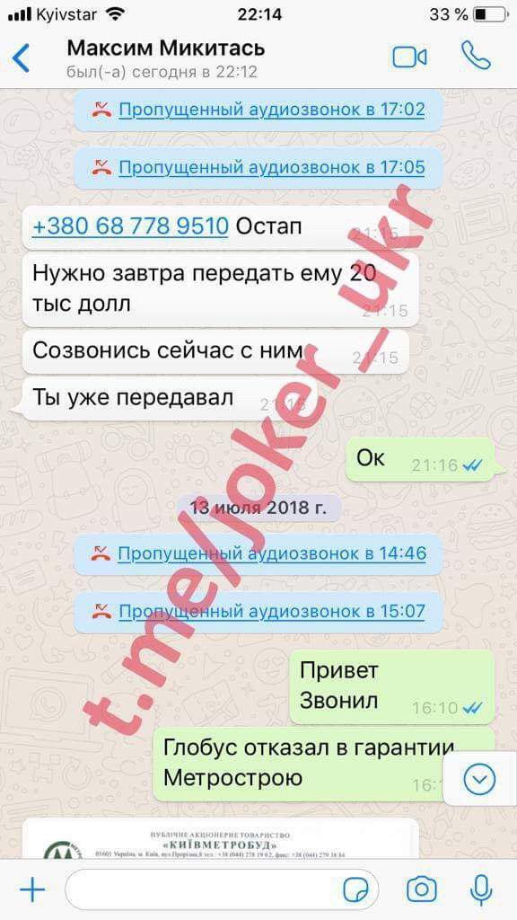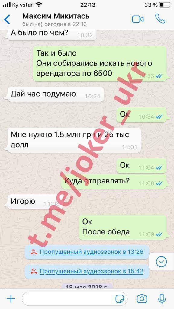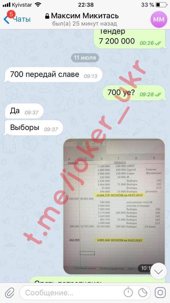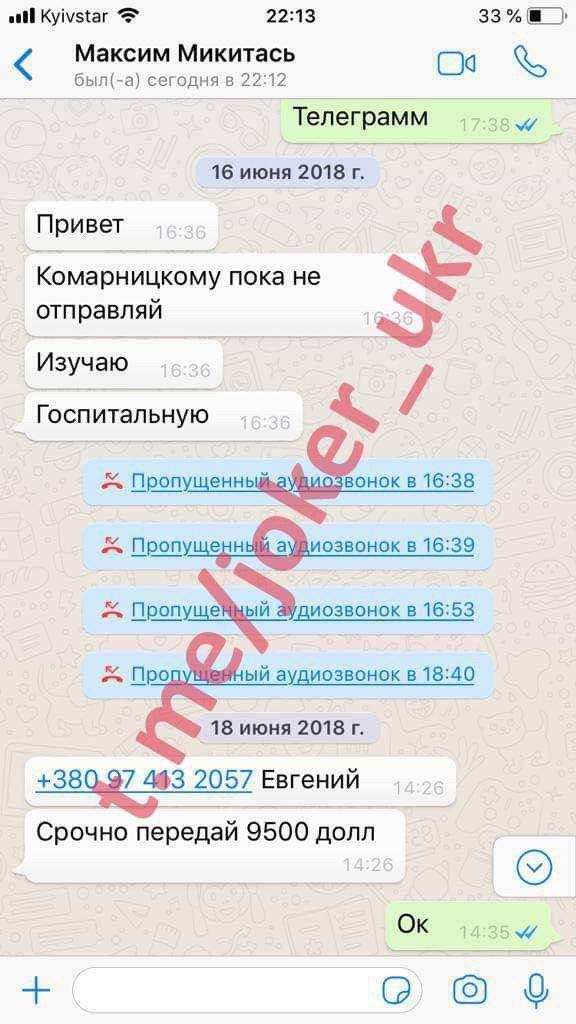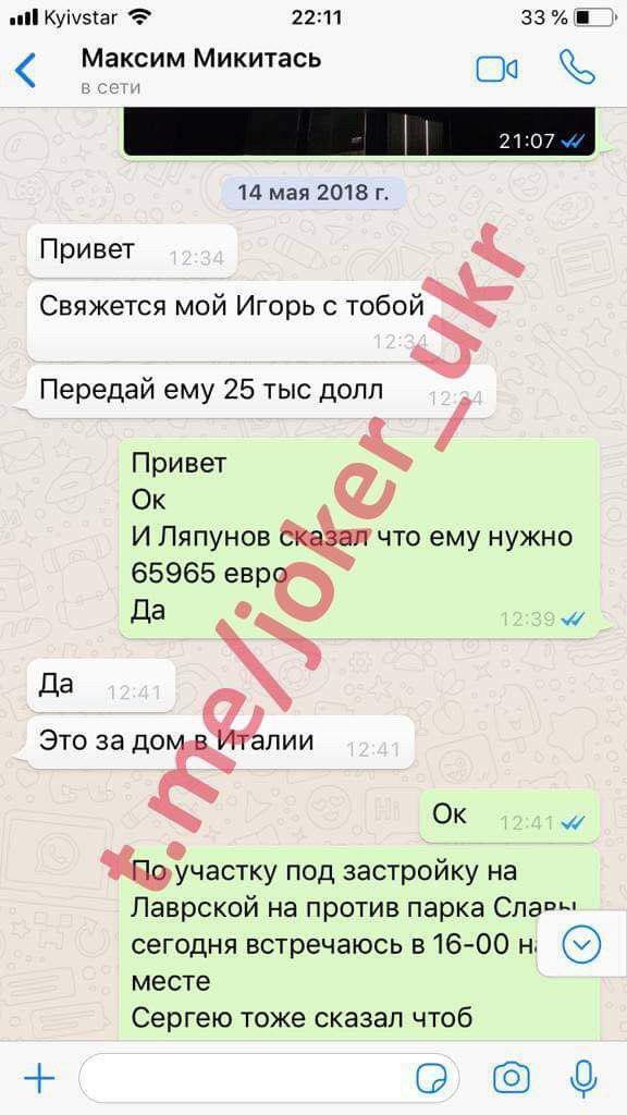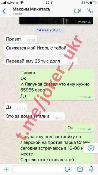 Переписка стосується афер Микитася. З повідомлень зрозуміло, що він регулярно просив гроші на певні витрати.