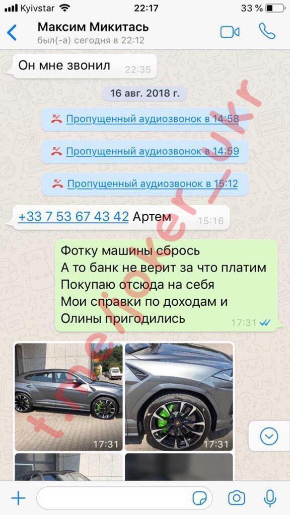 Також Микитась хвалився своїм авто, яке придбав за 650 тисяч євро.