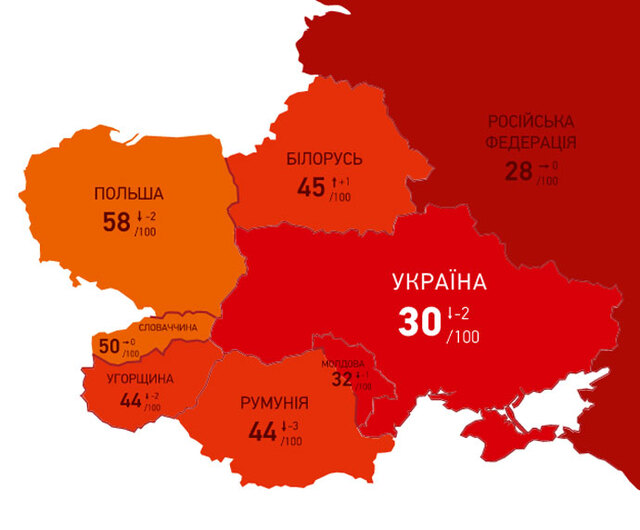 у 2019 році Україна набрала лише 30 балів зі 100 можливих, втративши два бали у порівнянні з минулим роком.
