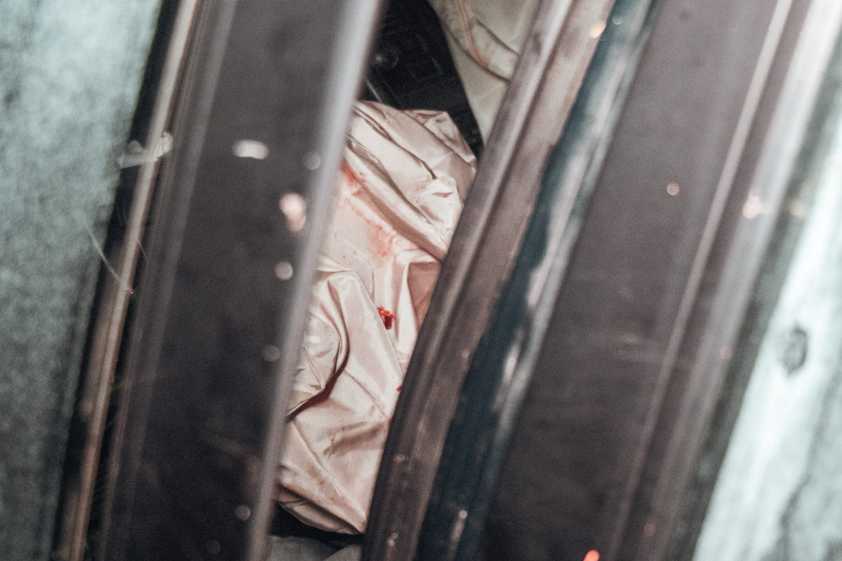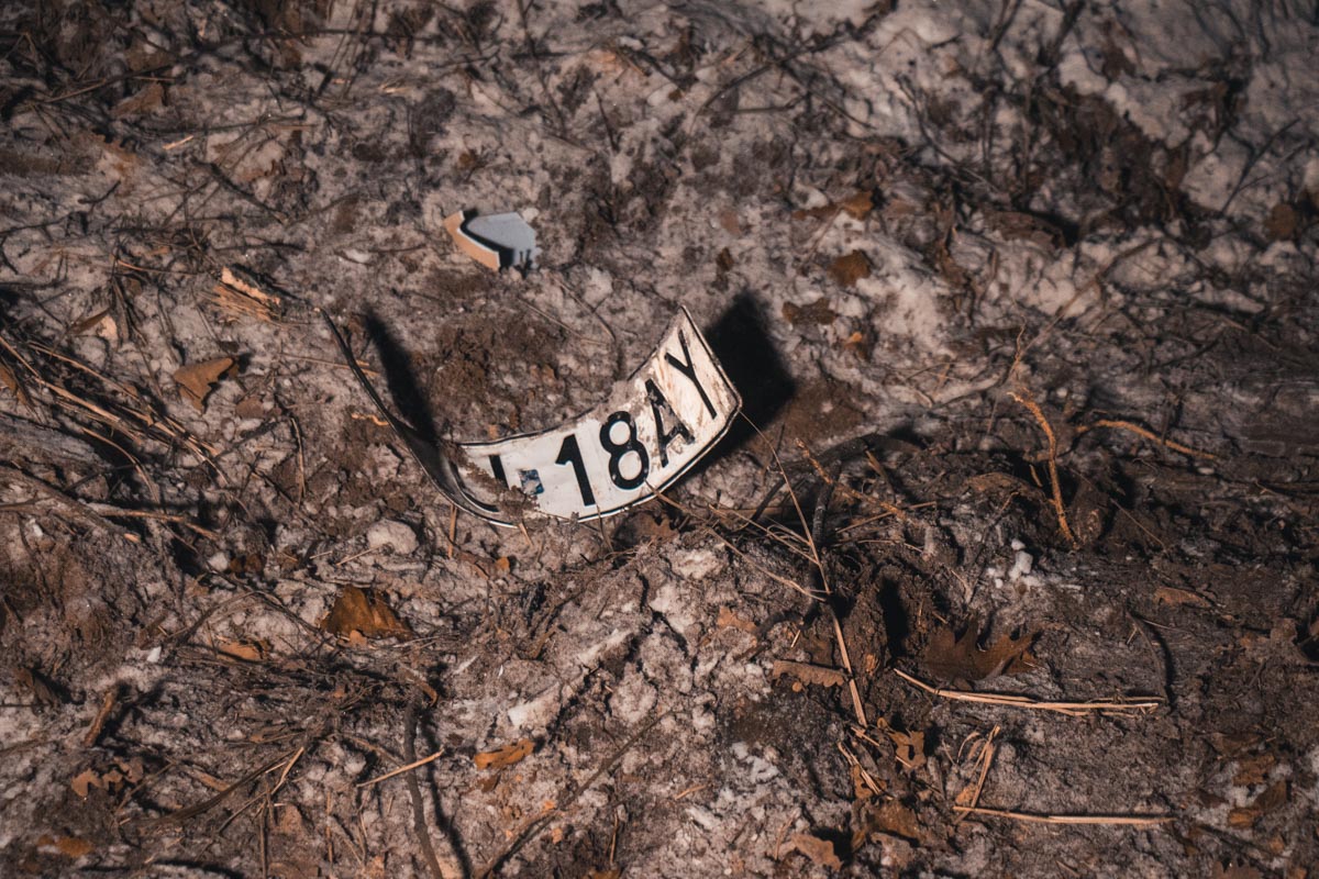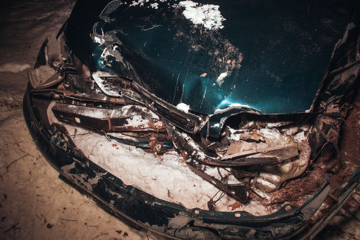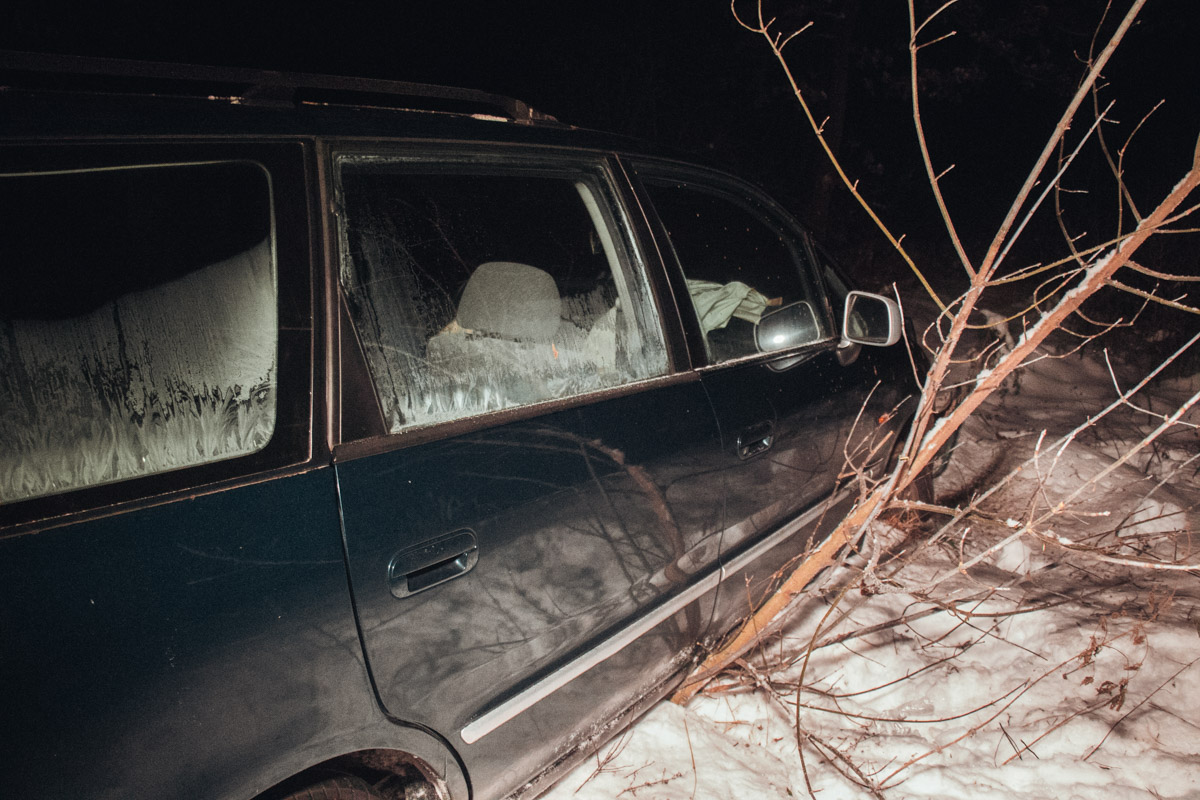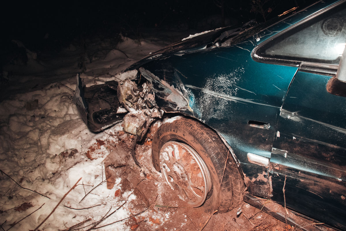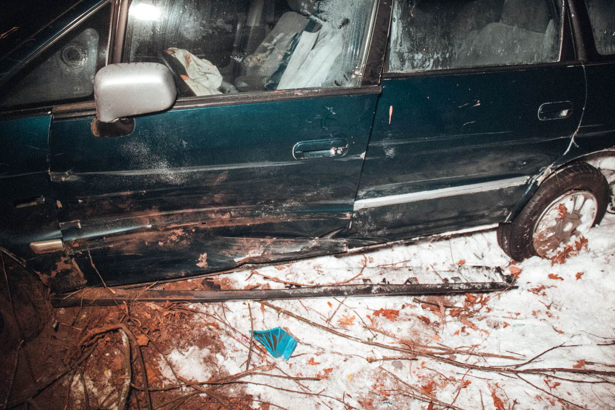 Судячи зі слідів від коліс на снігу, Honda їхала з Києва в бік Ірпеня. Попередньо, його занесло на трасі, після чого він вилетів із дороги, пролетів близько семи метрів і зупинився за деревами. На подушках безпеки видно сліди крові, а на пасажирському сидінні розкрита аптечка.