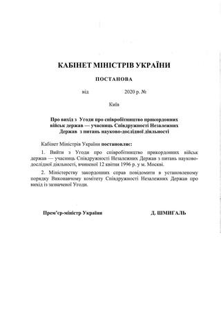 Кабмін ухвалив рішення про вихід України з ще однієї угоди з СНД.