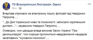 Про це повідомляється на сторінці громадської організації «Всеукраїнська люстрація Одеса» у Facebook.