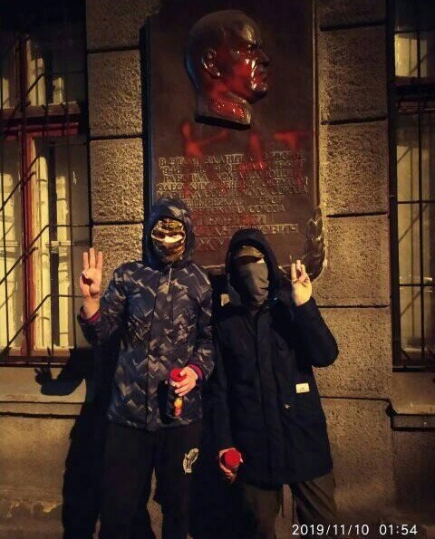 Дошку українському кату облили з нагоди Дня української мови та писемності.