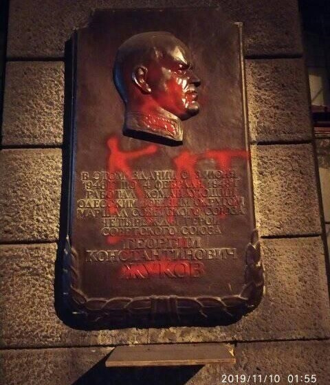 В Одесі пам'ятну дошку радянському маршалу Георгію Жукову облили червоною фарбою.