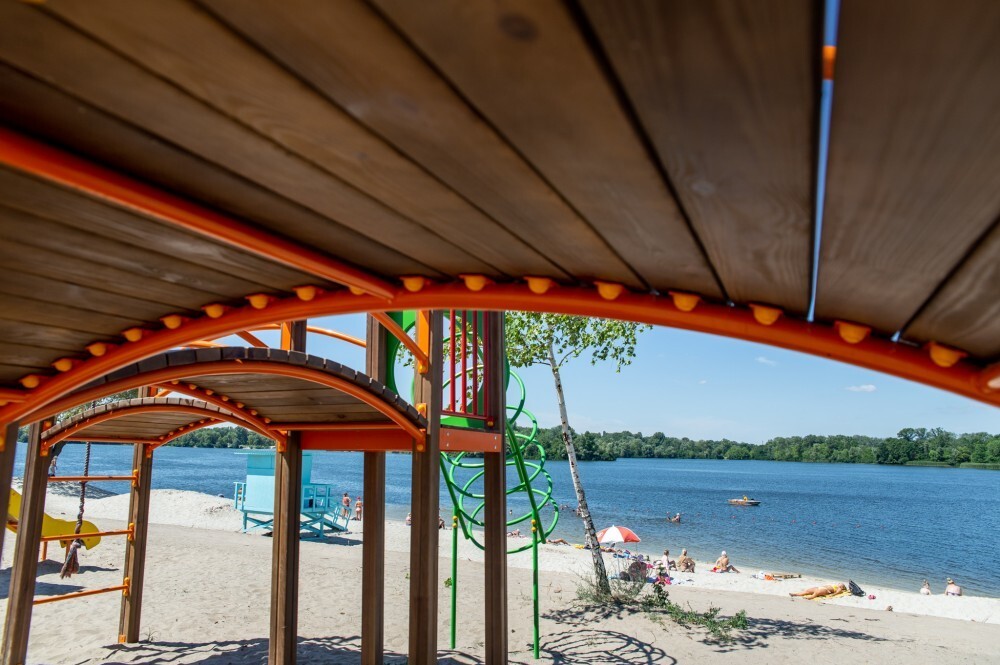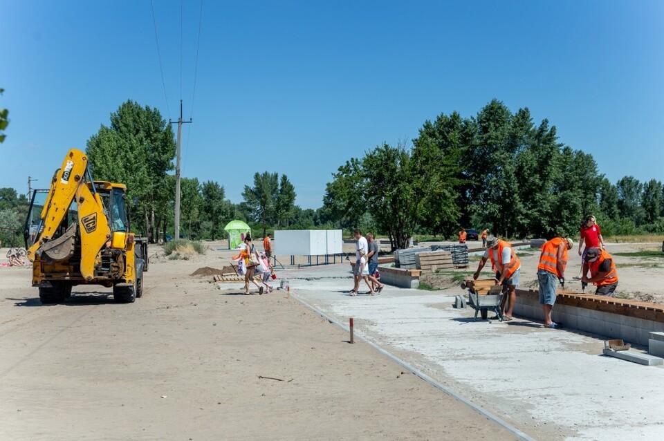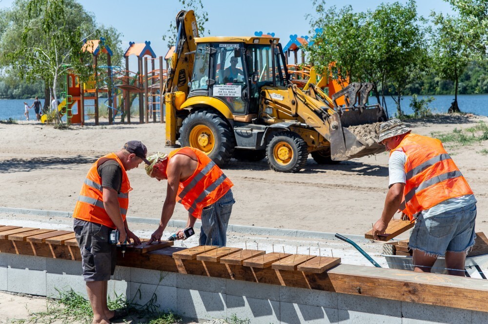 Він зазначив, що на пляжі «Троєщина» встановили душові кабінки, кабінки для переодягання та навіть зручні туалети. Будівельники закінчують вкладати плитку на нових пішохідних доріжках і доробляють нові лави.