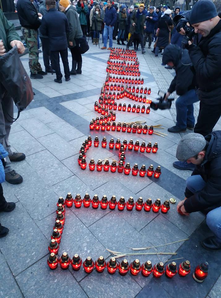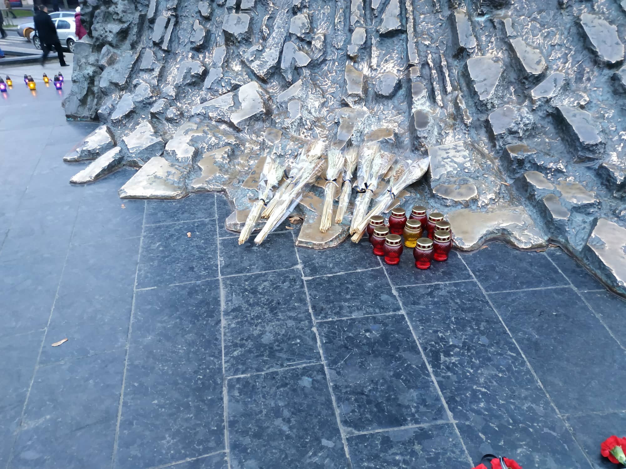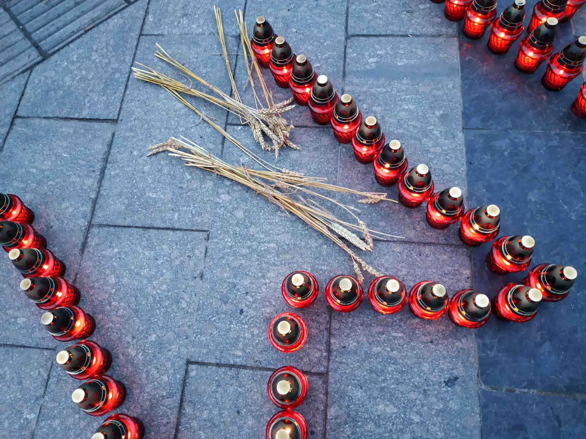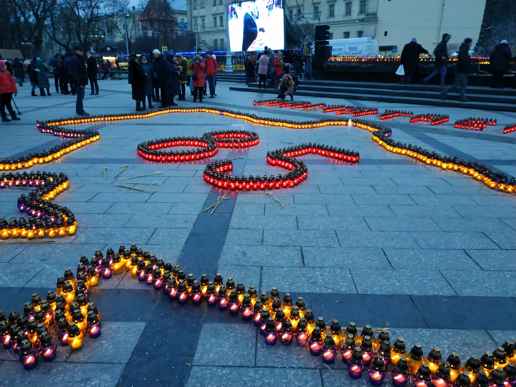 Також у центрі запалили лампадки, з яких виклали карту України та слова: "85. Пам'ятаємо". Між лампадками також розставили колоски.