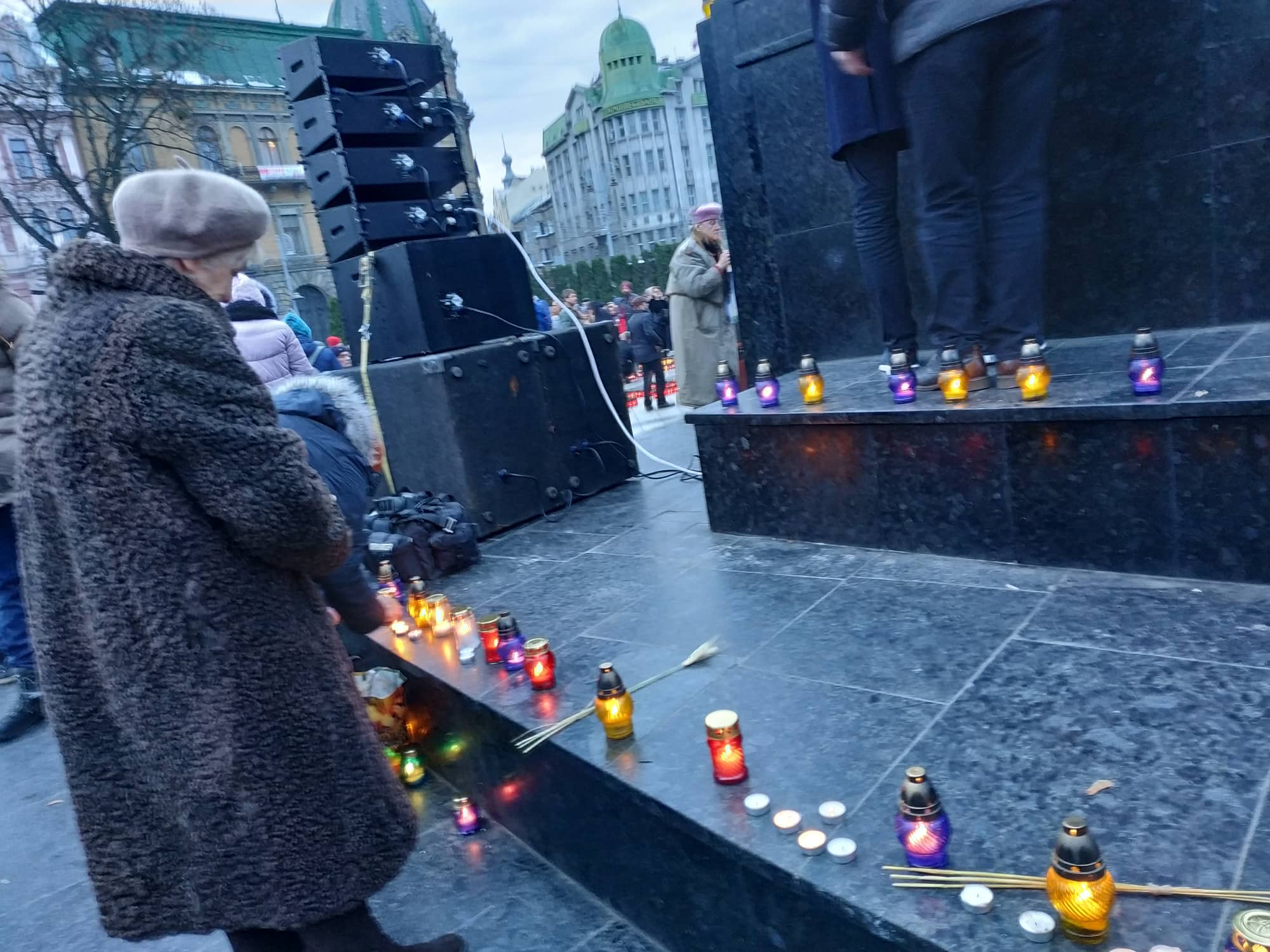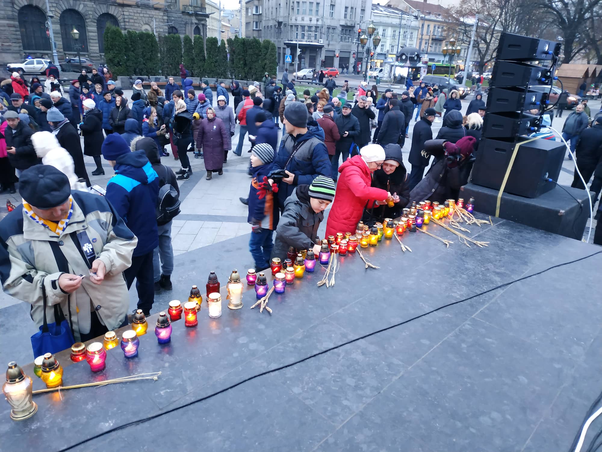 На заходи з вшанування зібралося близько сотні львів'ян. Жертв загиблих від Голодомору вшанували хвилиною мовчання.