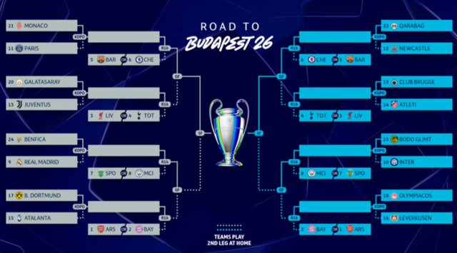 Вісім клубів, які продемонстрували найкращі результати на загальному етапі, пропускають стикові матчі та очікують на суперників у наступному раунді. Це «Арсенал», «Баварія», «Ліверпуль», «Тоттенгем», «Барселона», «Челсі», «Спортінг» та «Манчестер Сіті».