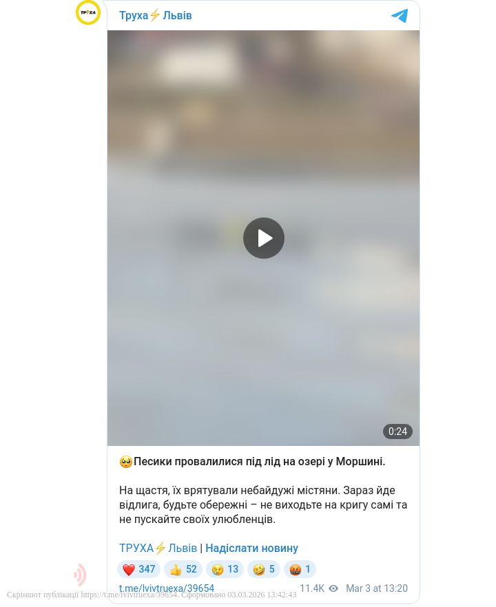 Наразі в регіоні спостерігається суттєве потепління та відлига, що робить перебування на замерзлих водоймах смертельно небезпечним. Рятувальники та активісти закликають мешканців дотримуватися правил безпеки: