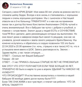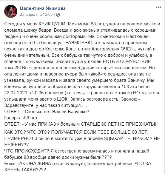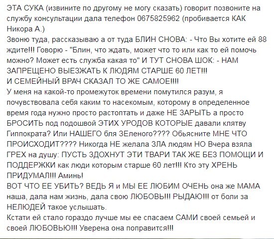 З українкою Валентиною Якимовою стався жахливий інцидент - до її 88-річною матері не хотіла приїжджати «Швидка».