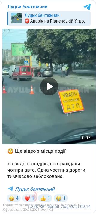 Відомо, що аварія сталась у середу, 20 серпня перед мостом на вулиці Рівненській.