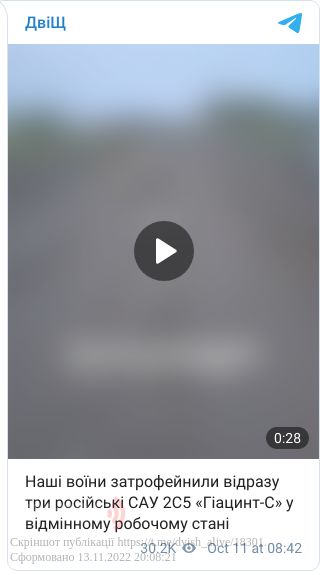 «Наші воїни затрофейнили відразу три російські САУ 2С5 «Гіацинт-С» у відмінному робочому стані», – йдеться в одному з дописів до відео.