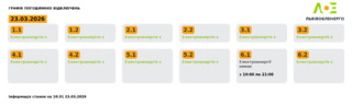 Сьогодні, 23 березня 2026 року, протягом доби на території Львова та Львівської області діятимуть графіки погодинних відключень електроенергії. Таке рішення прийнято НЕК «Укренерго» для збалансування енергосистеми країни.